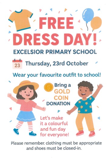 Wear your favourite outfit to school! Bring a gold coin donation Please remember clothing must be appropriate and shoes must be closed in.
