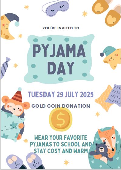 Wear your favourite pyjamas to school! School fundraiser - Gold coin donation
